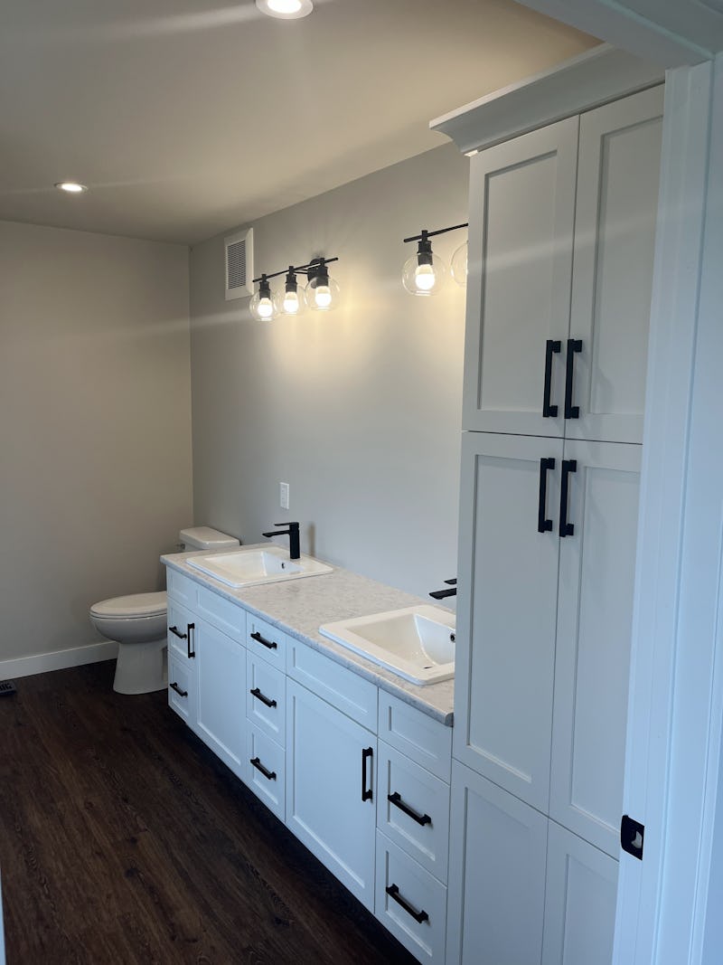 Living in a different state, Adam and Rachel were looking to return home to help with the family farm. Rachel dreamt of the perfect white house on a beautiful lot surrounded by trees near the family farm since she was child. Friends and community members suggested they reach out to SK2 Custom Homes, and together we were able to make those childhood dreams come true.
