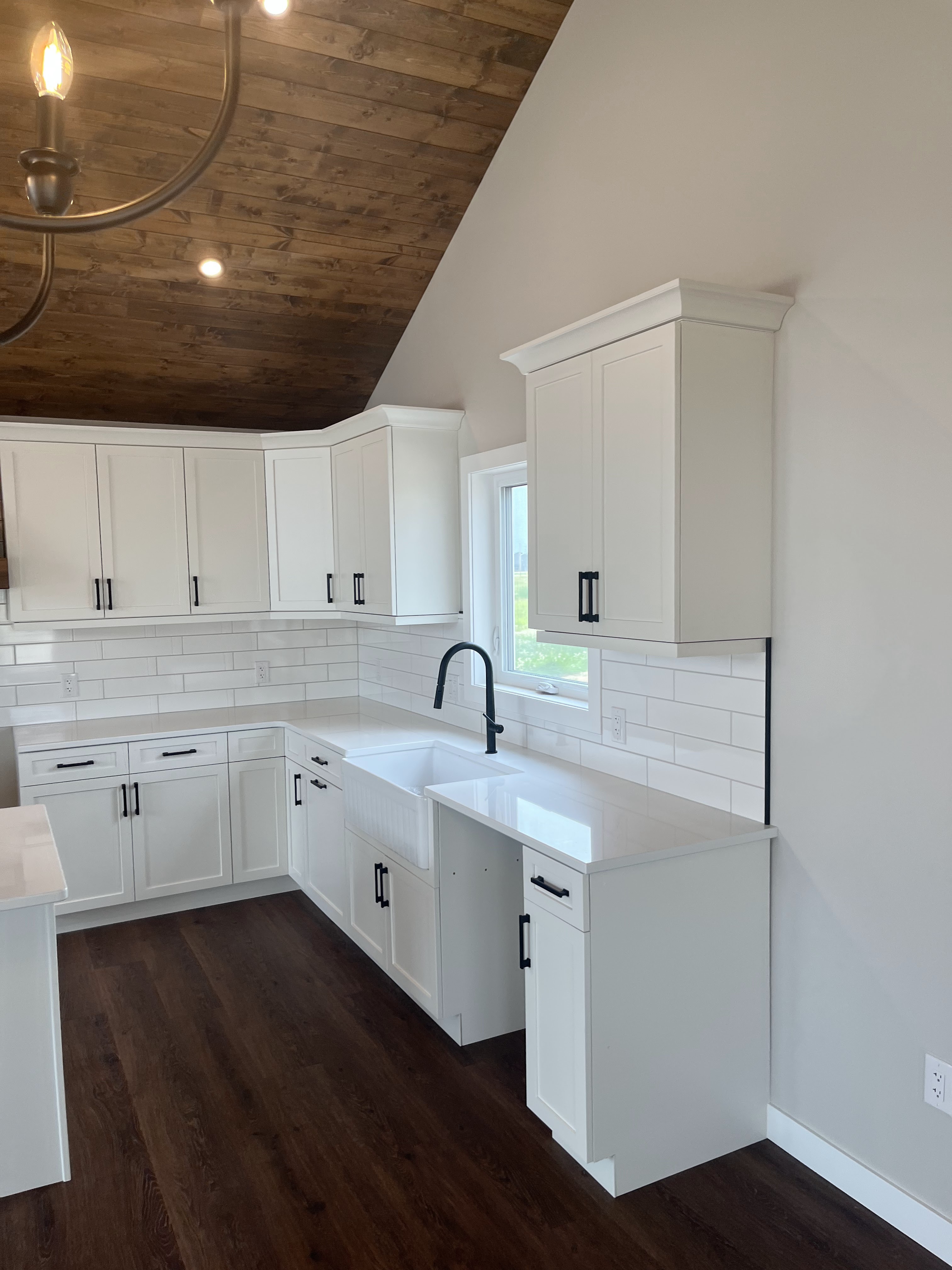 Living in a different state, Adam and Rachel were looking to return home to help with the family farm. Rachel dreamt of the perfect white house on a beautiful lot surrounded by trees near the family farm since she was child. Friends and community members suggested they reach out to SK2 Custom Homes, and together we were able to make those childhood dreams come true.