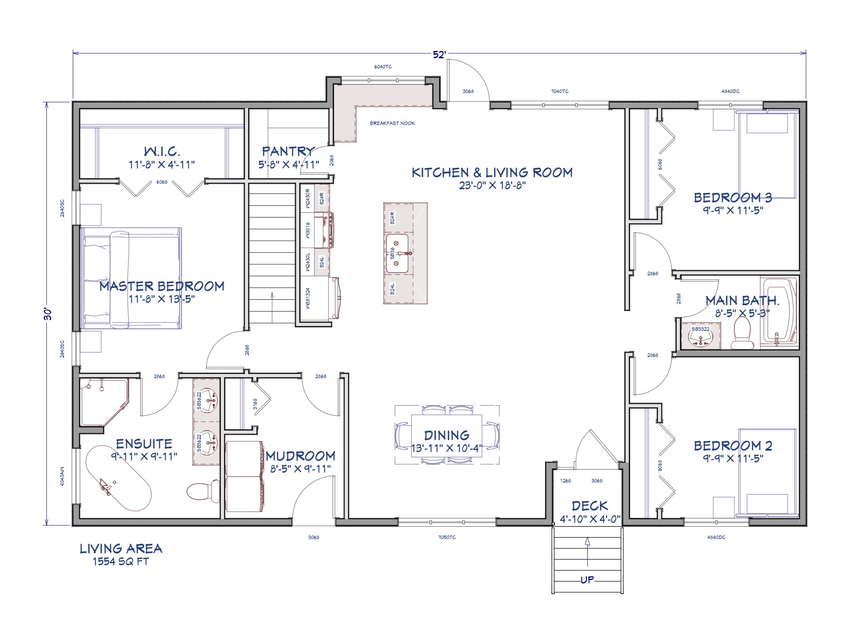 We worked with the Michaelson’s to create a floor plan that was conducive to their unique work schedules. With one family member working nights, having a master bedroom and ensuite that was tucked away from the rest of the household was very important. The layout we designed together allowed for the rest of the household to function, while not disturbing any sleep schedules!
